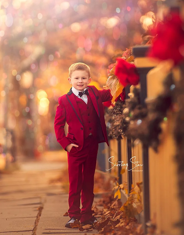 A stylish little boy rocks a red tuxedo during his Christmas photo session in Cape May, NJ. Surrounded by Victorian charm and holiday cheer, this dapper moment adds the perfect touch of timeless magic to the season.