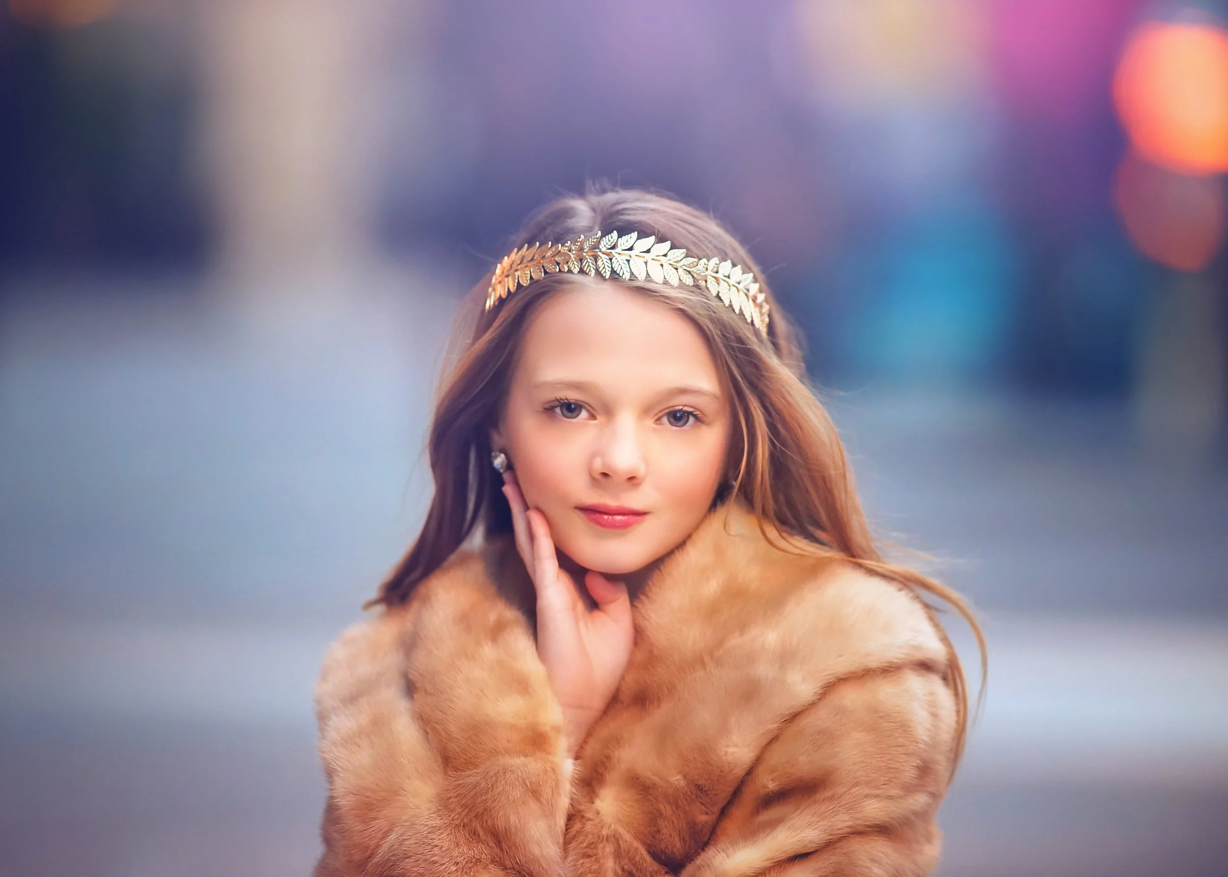 Beautiful little lady in front of gas lamps in Philadelphia.
