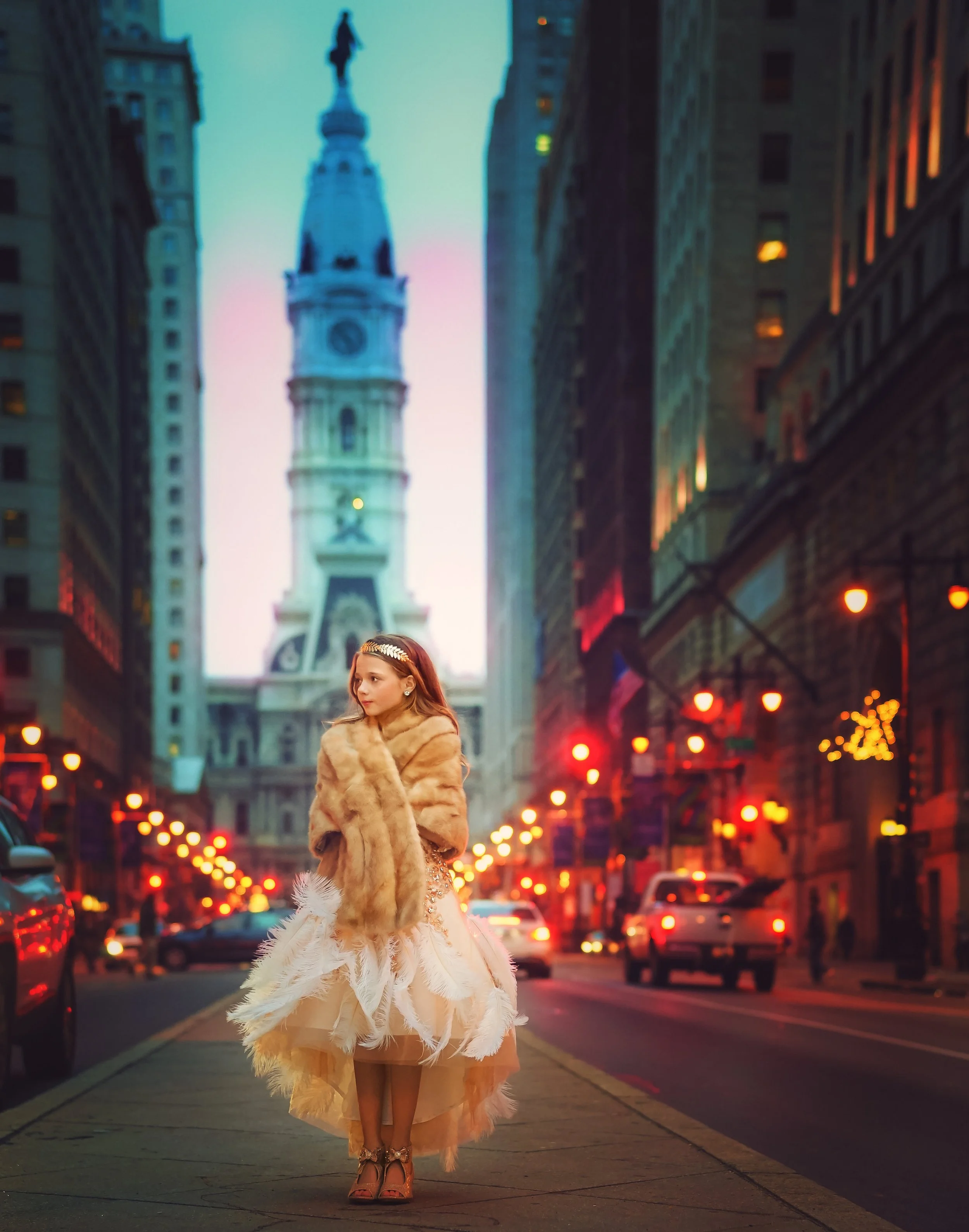 As one of the widest streets in Philadelphia, Broad Street offers a unique advantage for photographers. The wide expanse of the street creates a sense of openness and grandeur, making it perfect for capturing dramatic perspectives. Whether you’re photographing a family session with the skyline as the backdrop or capturing leading lines that draw the viewer’s eye into the distance, the street’s wide lanes allow for creative freedom.